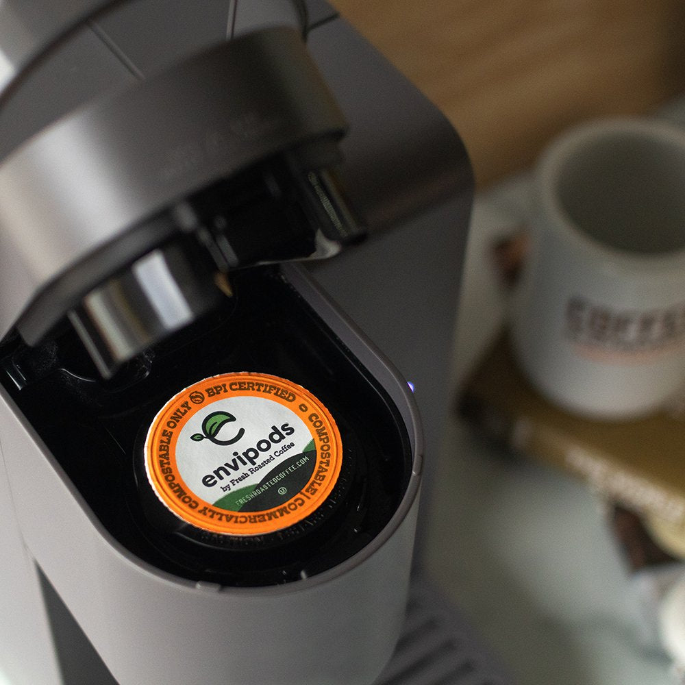 - Our commitment to sustainability goes beyond the coffee itself. With a plant-based ring, lid, and filter, our envipods® not only make a tastier brew, they’re also commercially compostable! (Compostable elements include bag and/or wrapper. Certified by BPI. Facilities may not exist in your area.)