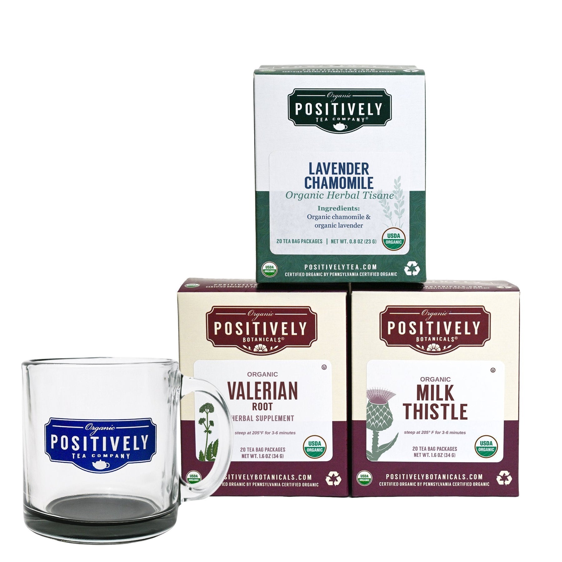 Organic Positively Tea & Botanicals Tea Bag and Mug Bundle