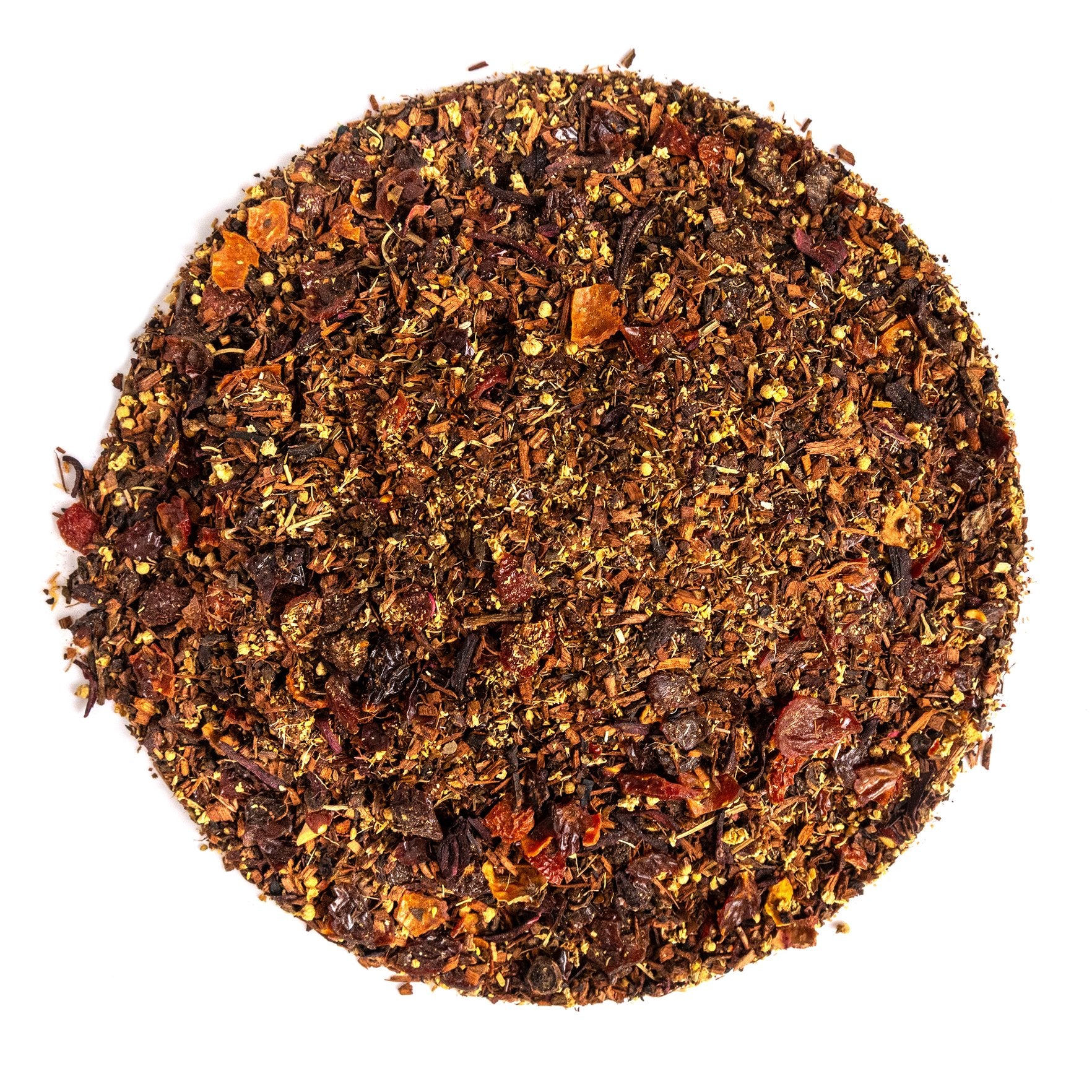Ingredients: organic rosehips, organic honeybush, organic elderflower, organic hibiscus, organic licorice root, organic flavoring