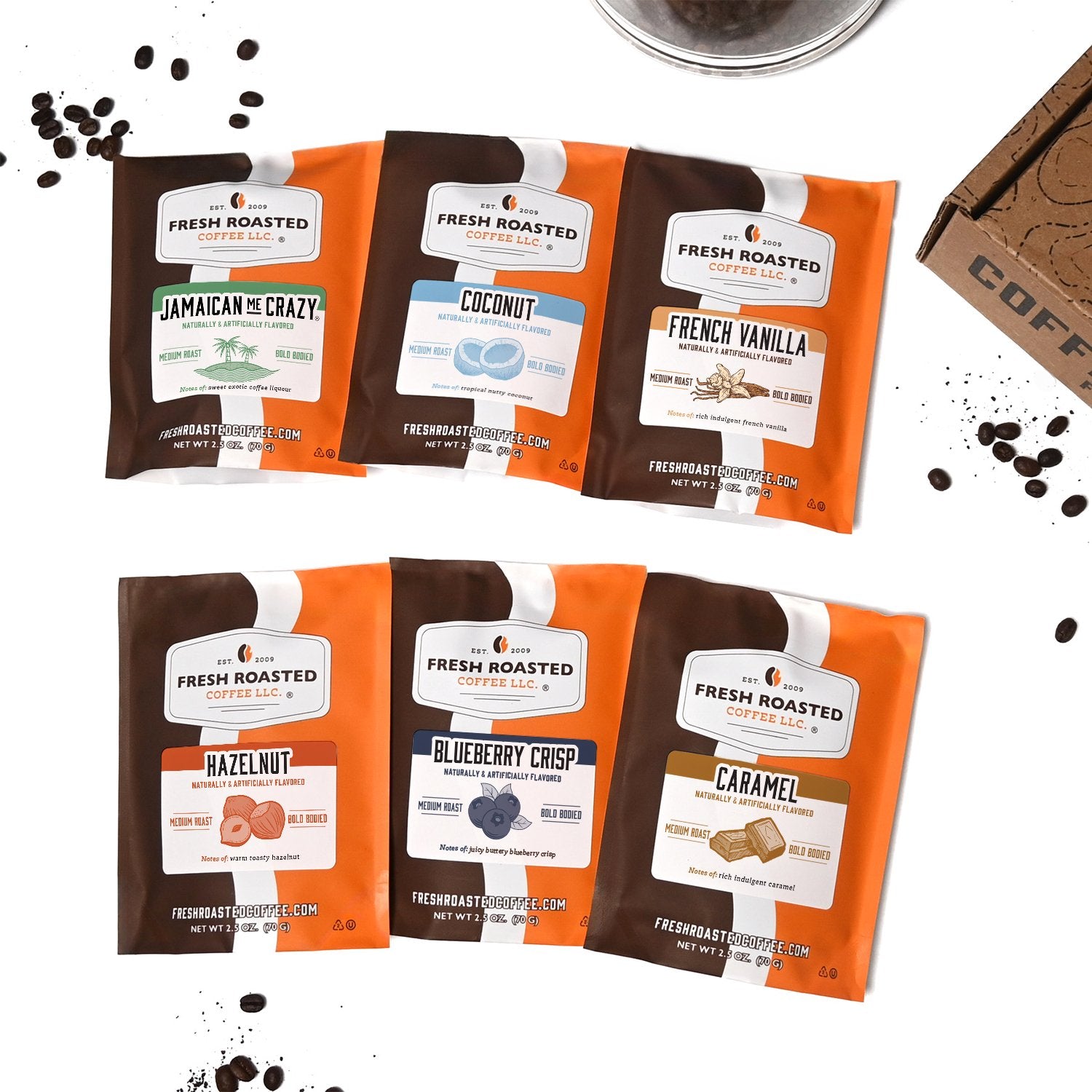 Fresh Roasted Six Pack Sampler - Flavored Coffee Starter Pack