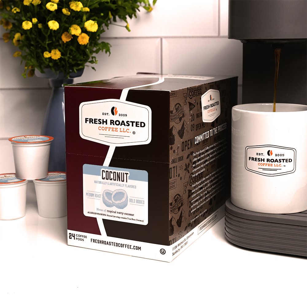 We've taken FRC to the next level of flavor - it's Fresh Roasted Flavored Coffee Pods! Each pod is packed with Fresh Roasted Coffee and our own coconut flavor - no sugar, no artificial sweeteners. And just like our traditional coffee pods, each one is nitrogen-flushed to maximize freshness.